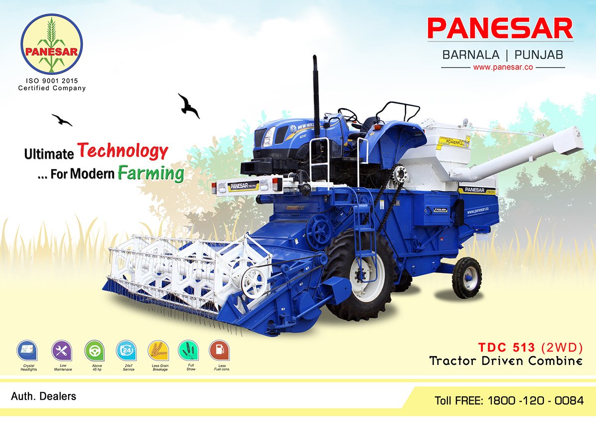 Panesar TDC 513 tractor mounted combine harvestor is one of the most powerful tool to cut the wheat